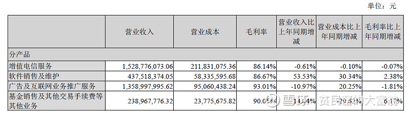 公司主要收入来源为增值电信服务、软件销售及维护服务、广告及互联网业务推广服务、基金代销及其他交易服务等。