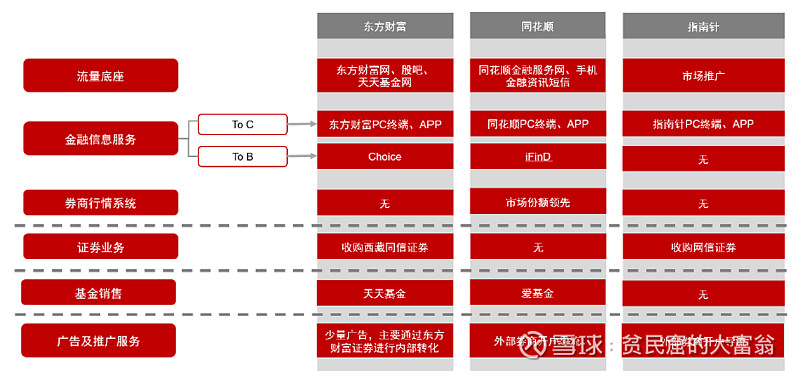 说起同花顺,资深点的股民朋友都会想到东方财富大智慧,我们看看这三家公司的区别:
